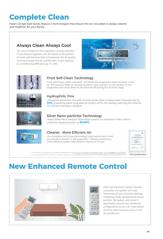 HAIER QUARTZ SYSTEM 1 R32 INVERTER AIRCON (2 TICKS) SUPPLY ONLY