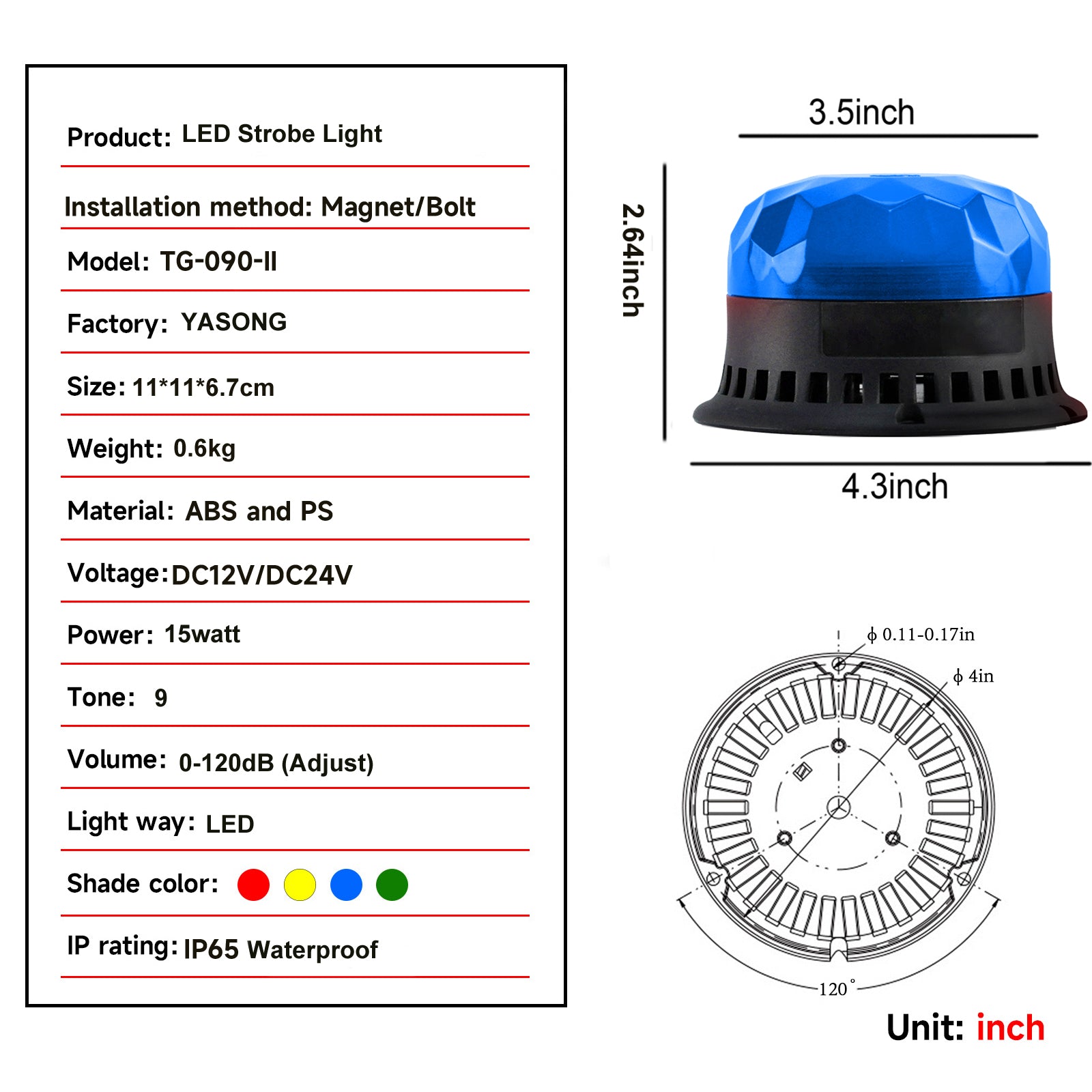 YASONG LED Beacon Light 120dB 9 Tones 2 Flashing Modes Strobe Lights for Vehicles, Truck, Forklift, Workshop Emergency SLA-090-II