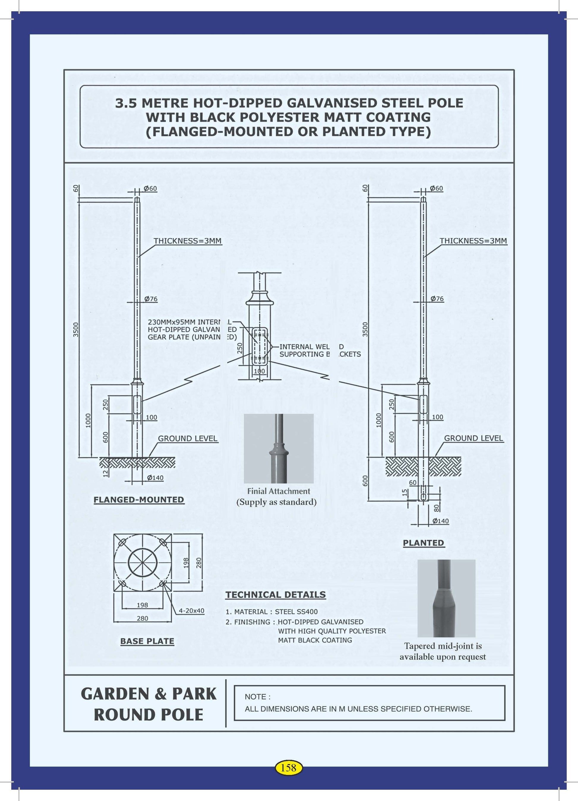 Galvapole 3.5m Flange Mounted Hot Dipped Galvanized Decorative Round Post Top Column with Black Powder Coated c/w J-Bolts and Nuts
