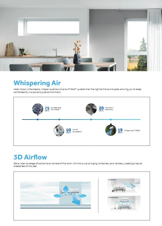 Haier indoor units boast a whisper-quiet sound level of 19db* quieter than the night at the countryside, allowing you to sleep comfortably in a cool and quiet environment.