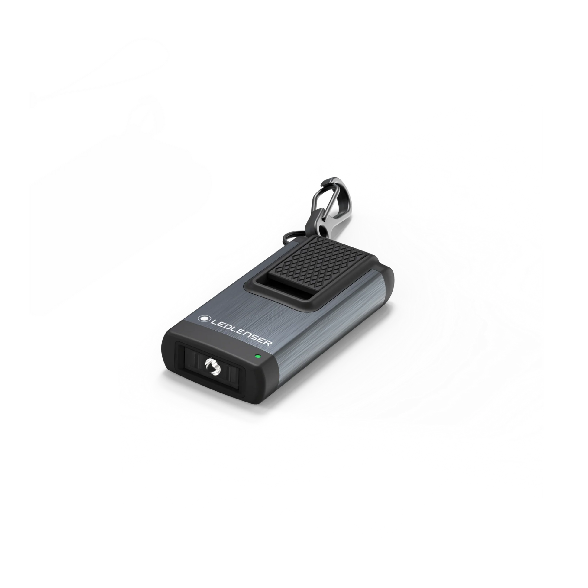 - Brushed aluminium housing with carabiner