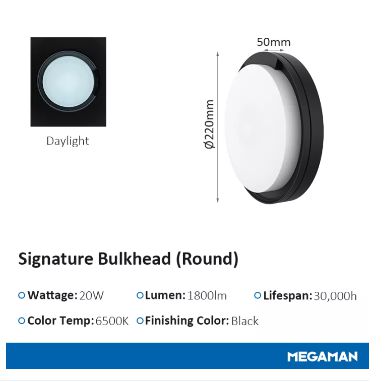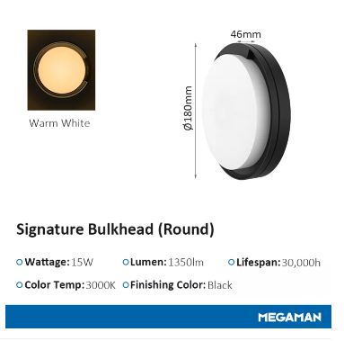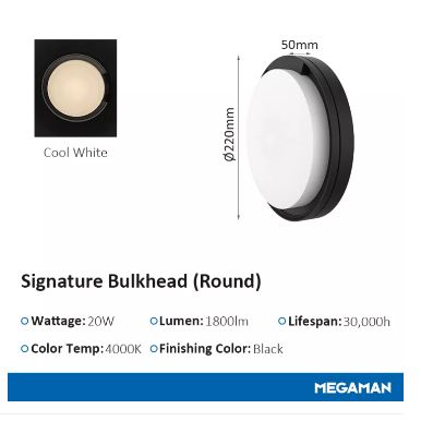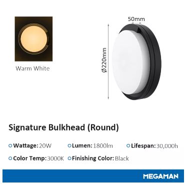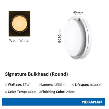 MEGAMAN Signature Bulkhead LED Surface Wall Lamp/Light