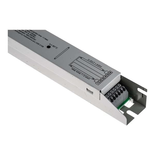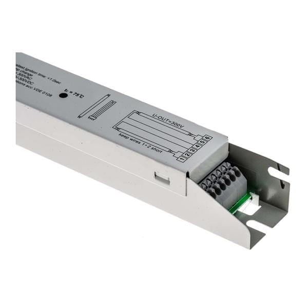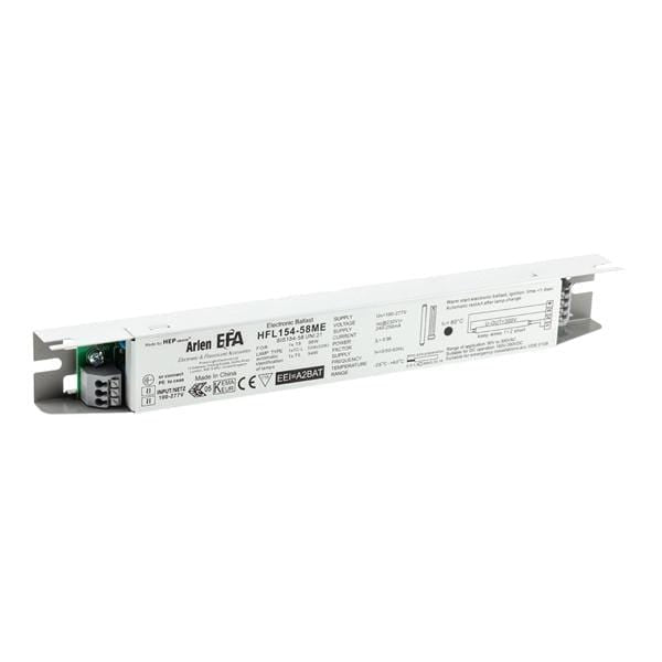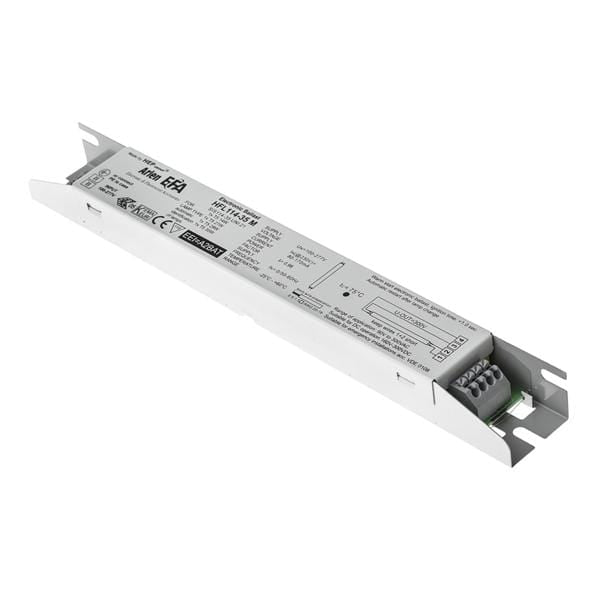 This ELT Linear high frequency ballast is built using environmentally friendly components and has a long life of 80,000 hours. This universal voltage electronic ballast operates T5 lamps.