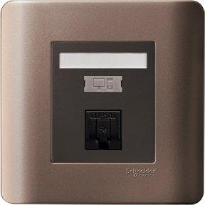Schneider 1G Data Outlet CAT5e on SHD Wallplate, Silver Bronze