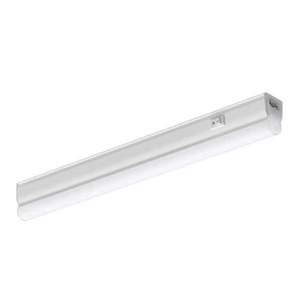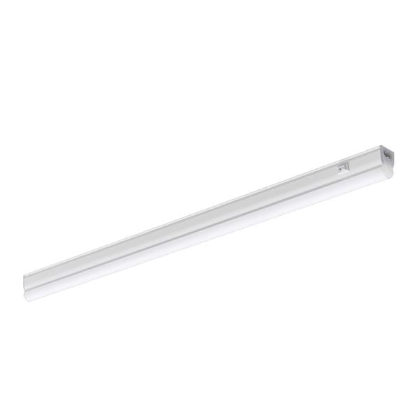 LED T5 replacement batten, high output range: more lumens per meter with efficiency up to 125 lum/watt, seamless linking (up to 10M), Ideal for direct lighting such as under cabinet or in kitchens, 150 degree beam angle, includes switch, includes 0.30m stripped cable, white polycarbonate body, includes standard and tilting brackets