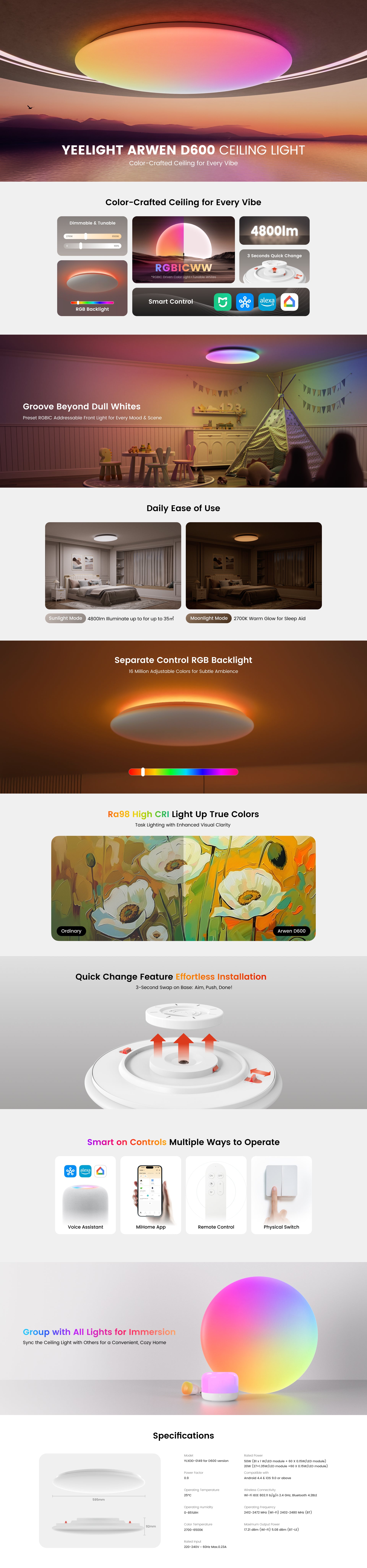 Key Features – Yeelight Arwen 500D & 600D Ceiling Lights