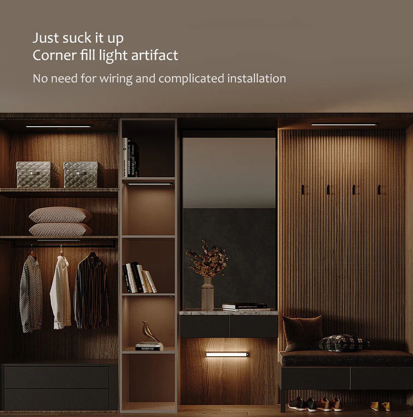 Equipped with a motion and light sensor, it automatically turns on in low-light environments when movement is detected—perfect for nighttime use or dark storage spaces. The USB-C rechargeable battery ensures long-lasting performance without the need for constant replacements, and the magnetic mounting system makes installation quick and drill-free.
